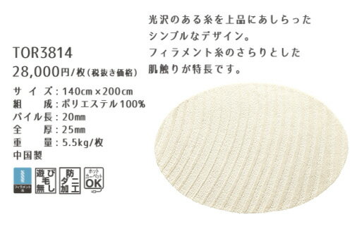 【東リ】 ラグマット TOR3814 140cm×200cm (楕円形) アイボリー ラグマット 北欧 アクセントラグ モダン 北欧 無地 ワンルーム 家族 一人暮らし 1.5畳 東リ ラグ