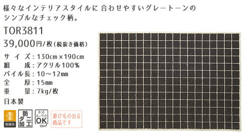 商品名:東リ TOR3811 ラグマットサイズ:130×190cm納期:ご決済完了後最短2〜4日後発送となります。